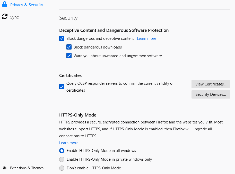 Most modern browsers have customizable settings that allow you to improve the security and privacy of your online activity. In Mozilla Firefox, this is done by doing the following (without negatively impacting the user experience or disabling key website features):